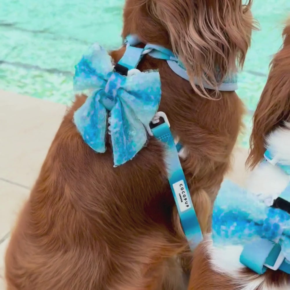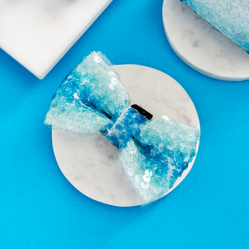Add some shimmer to your dog walks this summer with our Seaside Shimmer Bow Tie. Featuring a stunning blue sequin design, this bow tie is perfect for beach days and will have your pup glistening in the sun. A must-have for the fashionable dog owner!