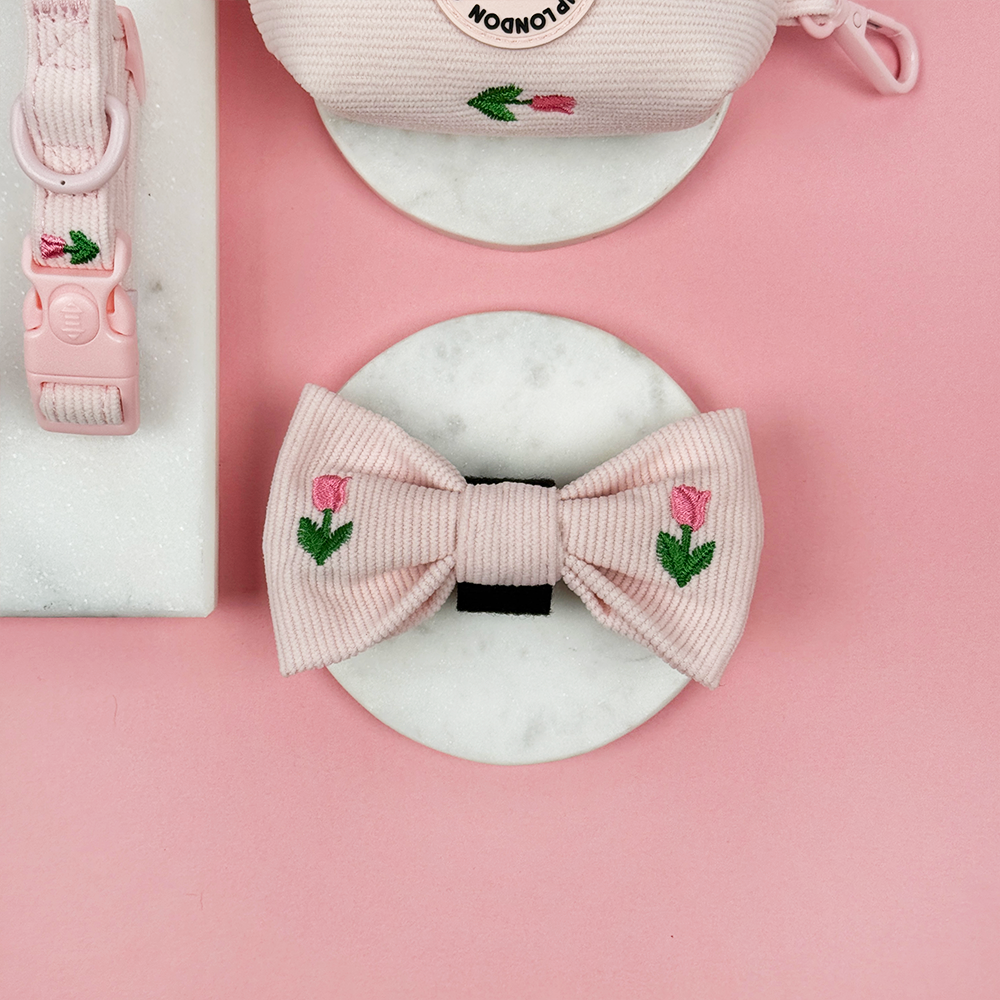 Spruce up your pups outfit with the Tulip Tails Dog Bow Tie, a dapper accessory perfect for spring and summer adventures. Taking inspiration from tulip fields in soft pink tones, this adorable Dog Bow Tie adds a touch of floral elegance to your dogs fit.