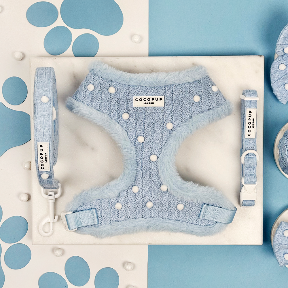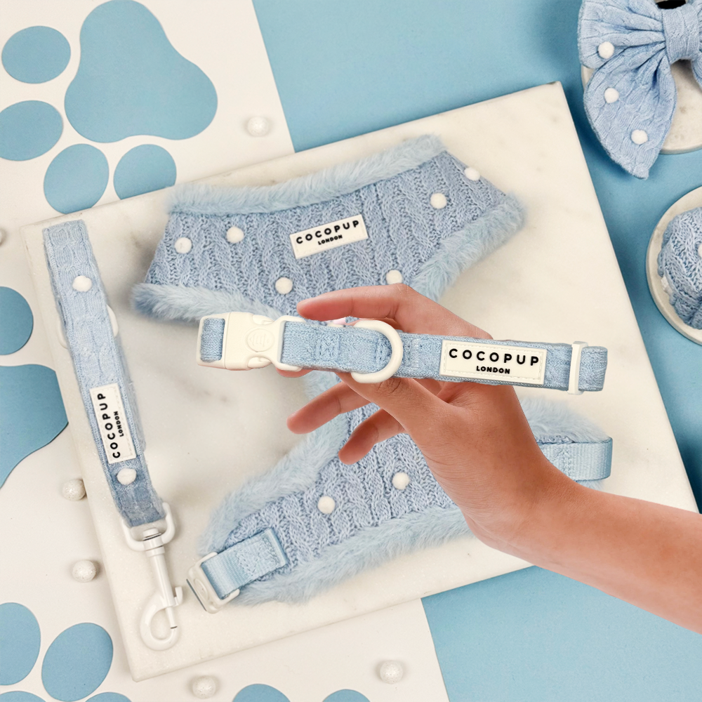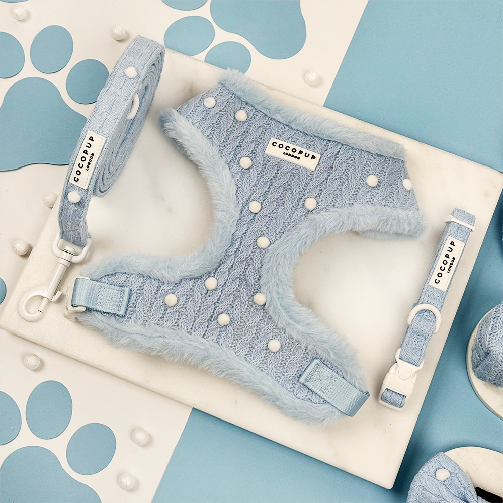 Introducing our Snowpaws Adjustable Neck Harness, Lead & Collar Bundle - the perfect set for your pup's daily walk this winter! Made from soft cable knit, this bundle includes an adjustable neck harness, lead, and collar, the harness features super cute snowball pom poms. Time for some pawsome adventures!