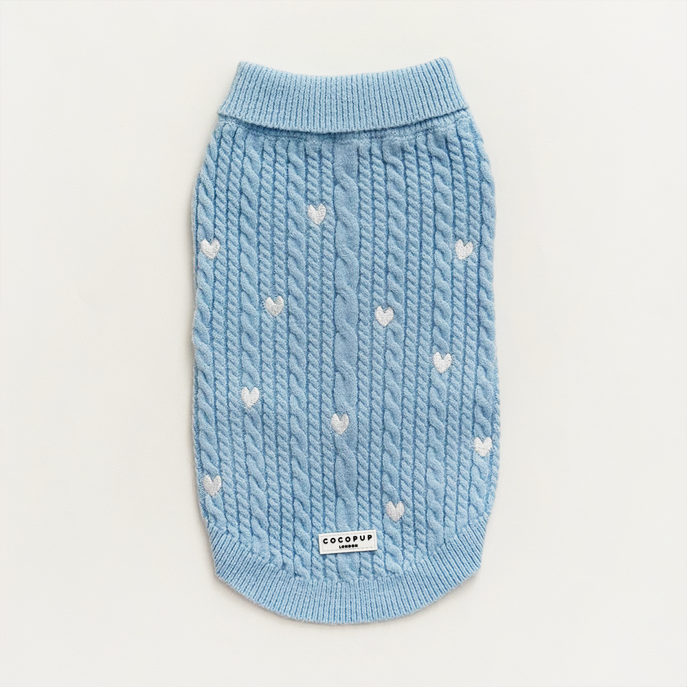 Keep your pup warm and stylish with our classic Blue Heart Cable Knit Dog Jumper!