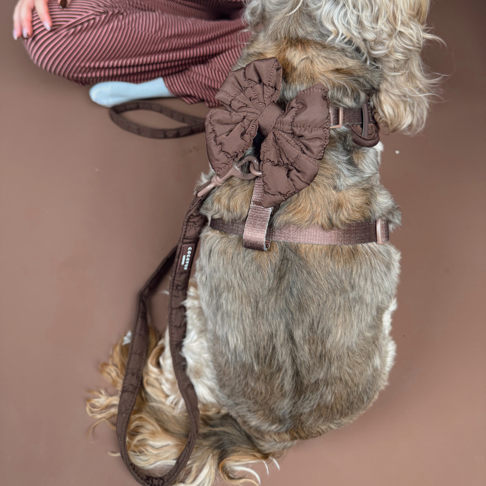 Add a splash of chic to your daily dog walk with the Espresso Quilted Lead in a rich chocolate brown. Perfectly matching your crossbody crescent dog walking bag, this lead keeps you and your pup coordinated and stylish wherever you go.