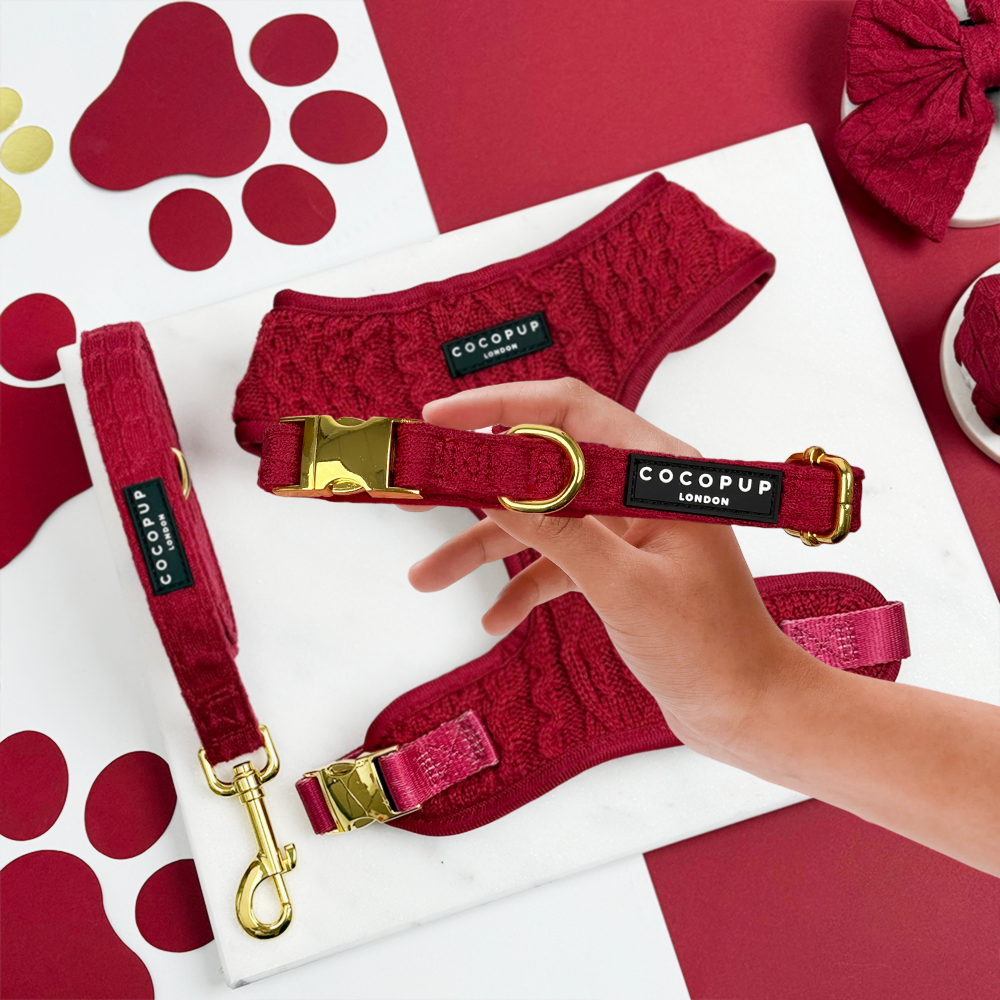 Mulled Wine Cable Knit Adjustable Neck Harness, Lead & Collar Bundle