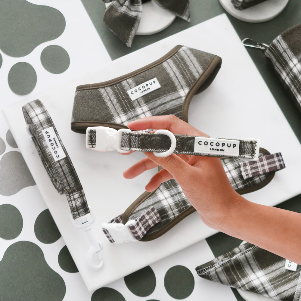 Treat your furry friend to the versatile style and comfort of our Olive Check Collection. With an Adjustable Neck Harness, Collar and Lead, your pup will be both fashionable and secure on walks. No more struggling with ill-fitting gear - this bundle has got you covered!