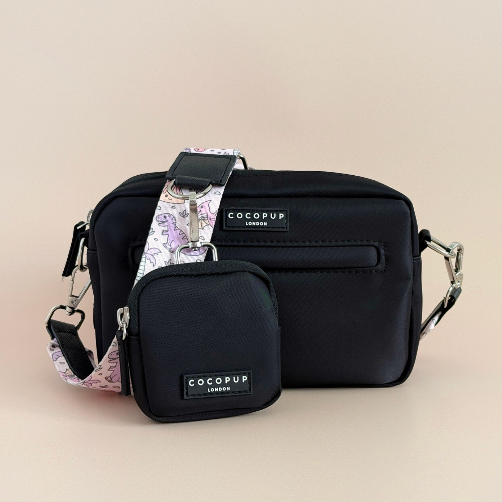 Our Bag Bundle includes: Bag, Treat Pouch & Princess Dino Bag Strap