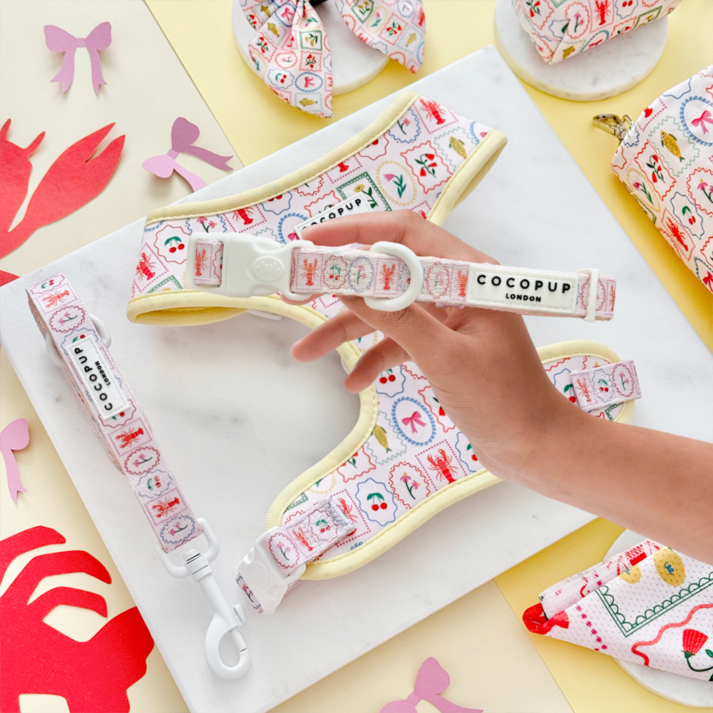 Take your furry friend on a summer adventure with the Dolce Vita Adjustable Neck Harness, Lead & Collar Bundle. The vibrant design and lemon yellow trim add a pop of colour to your dog walks, while the safety locks on the harness and collar buckles keeps your pup secure. Perfect for a holiday trip with your pup!