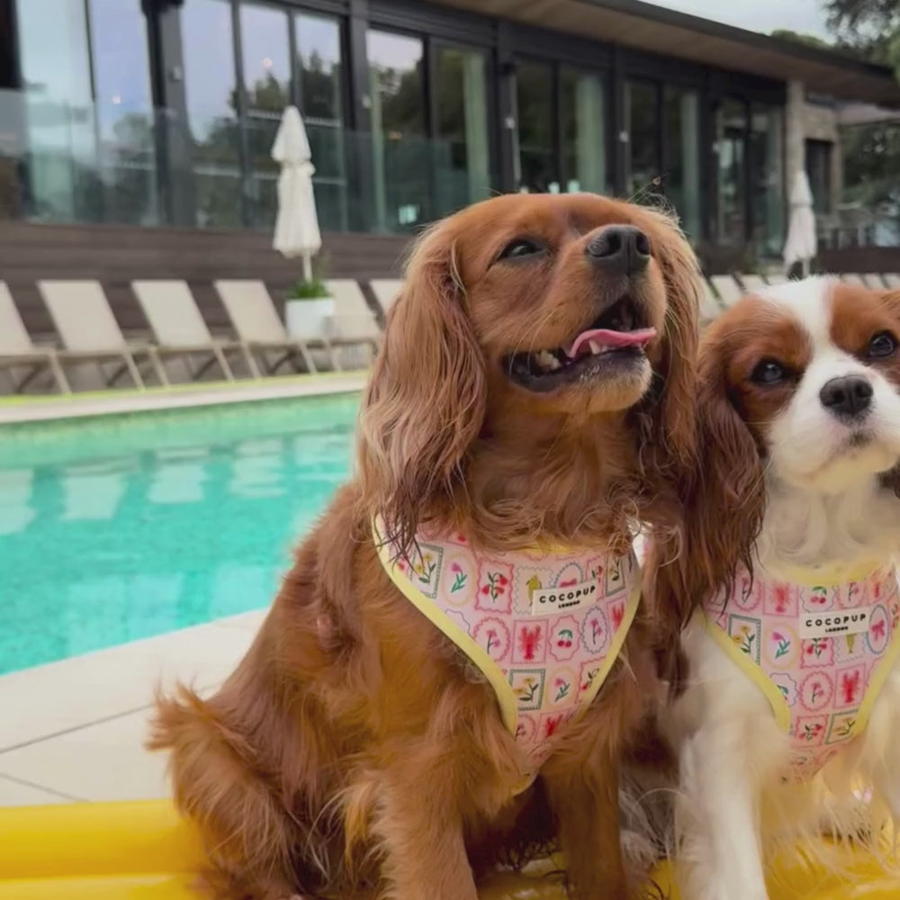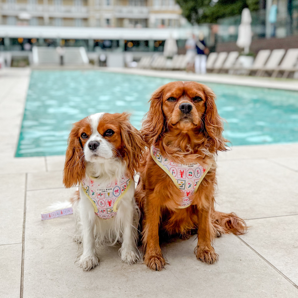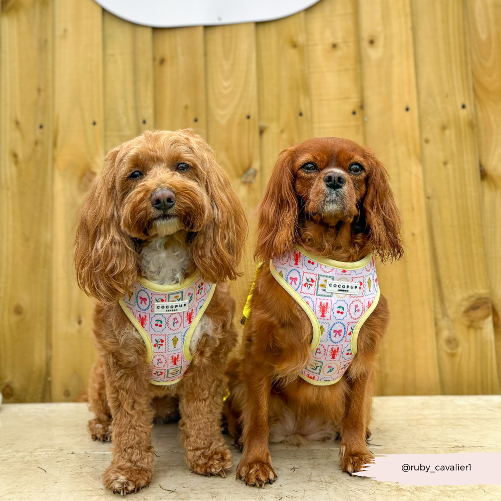 Our Adjustable Neck harnesses provide a comfy and stylish alternative to collars. Slide over your pup's head, adjust at the neck and chest, fasten at the side and you'll be "walkies" ready!