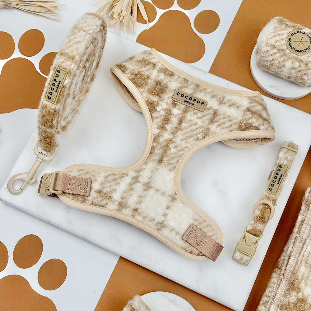 Ready for countryside adventures? This delightful Highland Fleece bundle brings timeless style to every dog walk. The charming nude and cream checked pattern never goes out of fashion, the safety lock buckles on the harness and collar mean your furry friend stays secure and snug. Perfect for pups who love exploring and owners who love peace of mind!