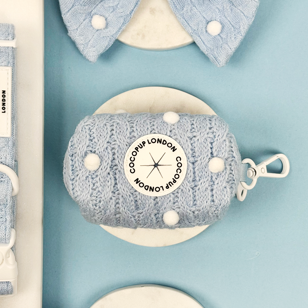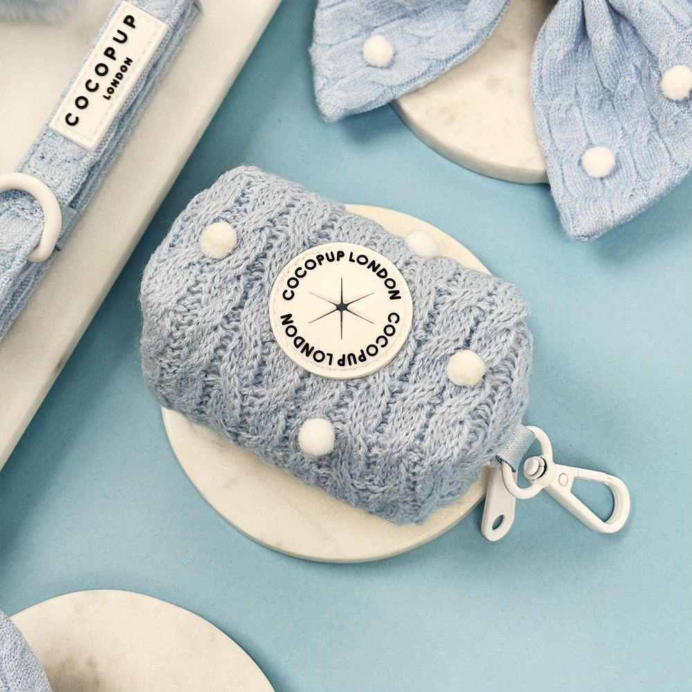 Add a touch of fun to your dog walks with the Snowpaws Poop Bag Holder. Its baby blue cable knit look and fluffy white snowball pom poms bring a cosy charm while keeping your poop bags handy and secure.