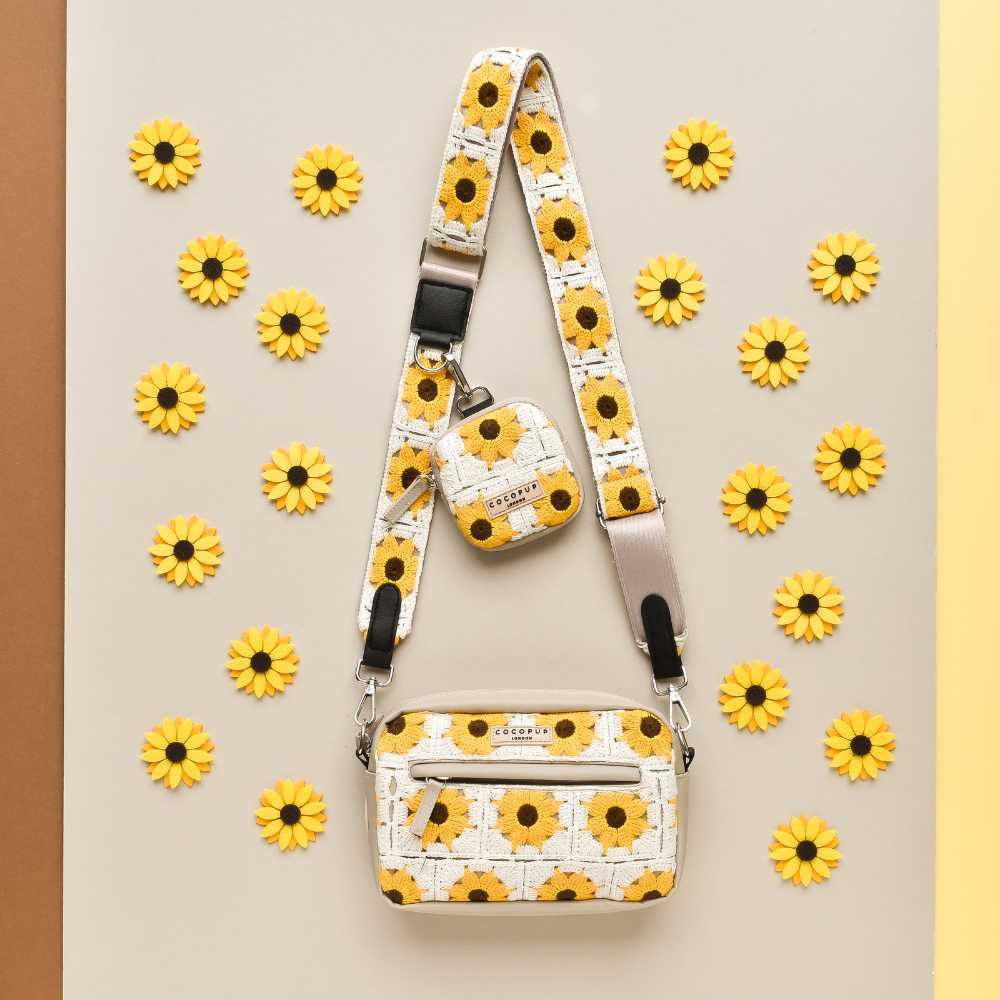 Our Bag Bundle includes: Sunflower Patch Bag, Sunflower Patch Treat Pouch & Sunflower Patch Bag Strap